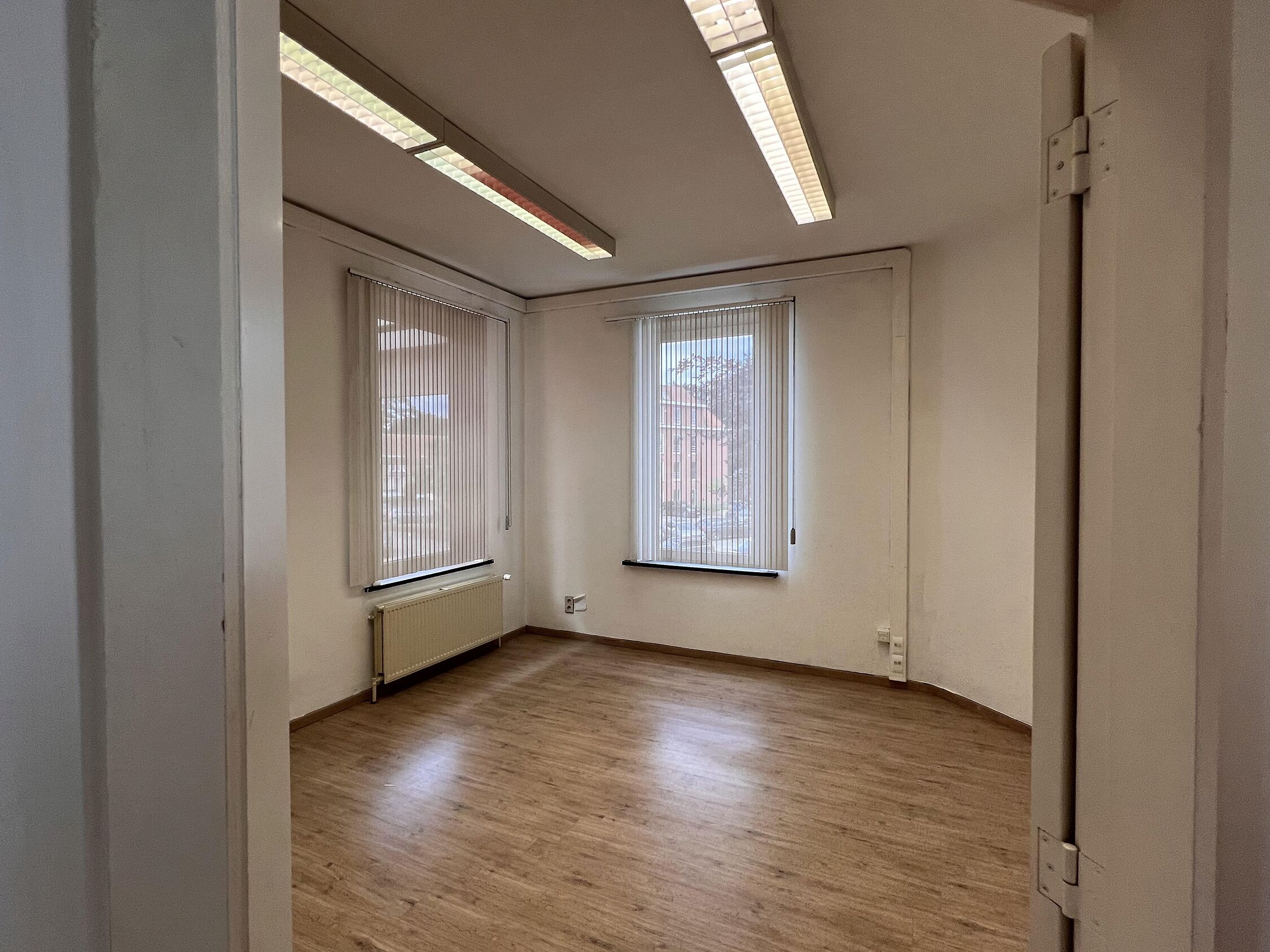 Dit kantoor van 60m² heeft een aparte inkom en is gelegen op het eerste verdiep. Op het gelijkvloers is een gedeelde keuken en gedeeld sanitair. Het kantoor maakt deel uit van een oude brandweerkazerne, waarbij een gedeelde receptie met onthaal is voor alle bezoekers. Er zijn twee vergaderzalen vrij te gebruiken, mits reservatie via een reservatiesysteem. Ook postbedeling wordt verzorgd via de receptie.