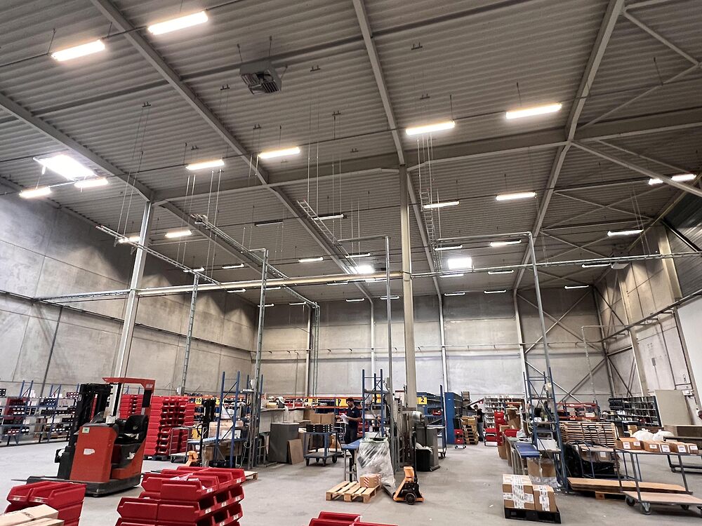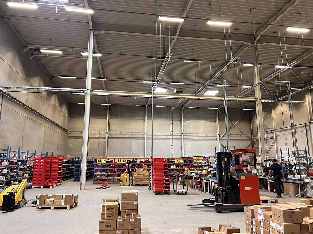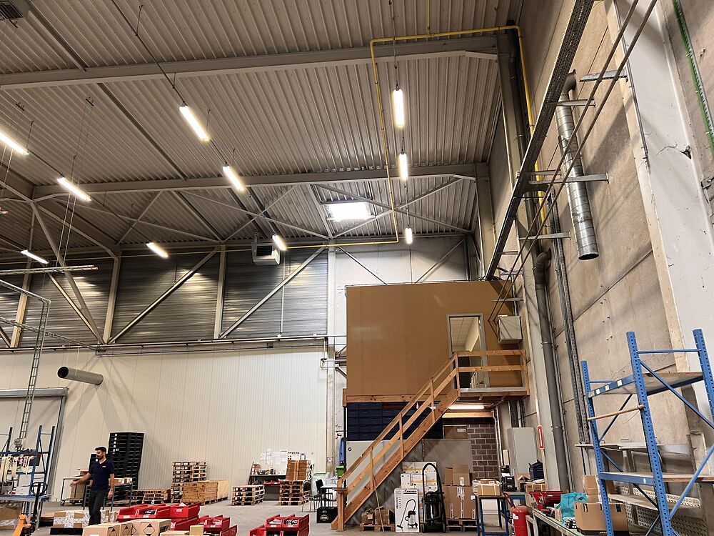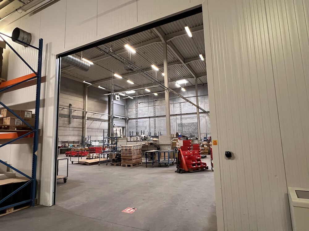 Dit magazijn van 1.386m² met kantoor en sociale ruimte is gelegen in industriezone De Prijkels, vlakbij de op- en afrit van de E17 te Deinze. Het magazijn maakt deel uit van een grotere bedrijfssite. Er is een voorliggende handelingszone met 2 sectionaalpoorten dat met het magazijn kan worden afgesloten via een snelrolpoort.