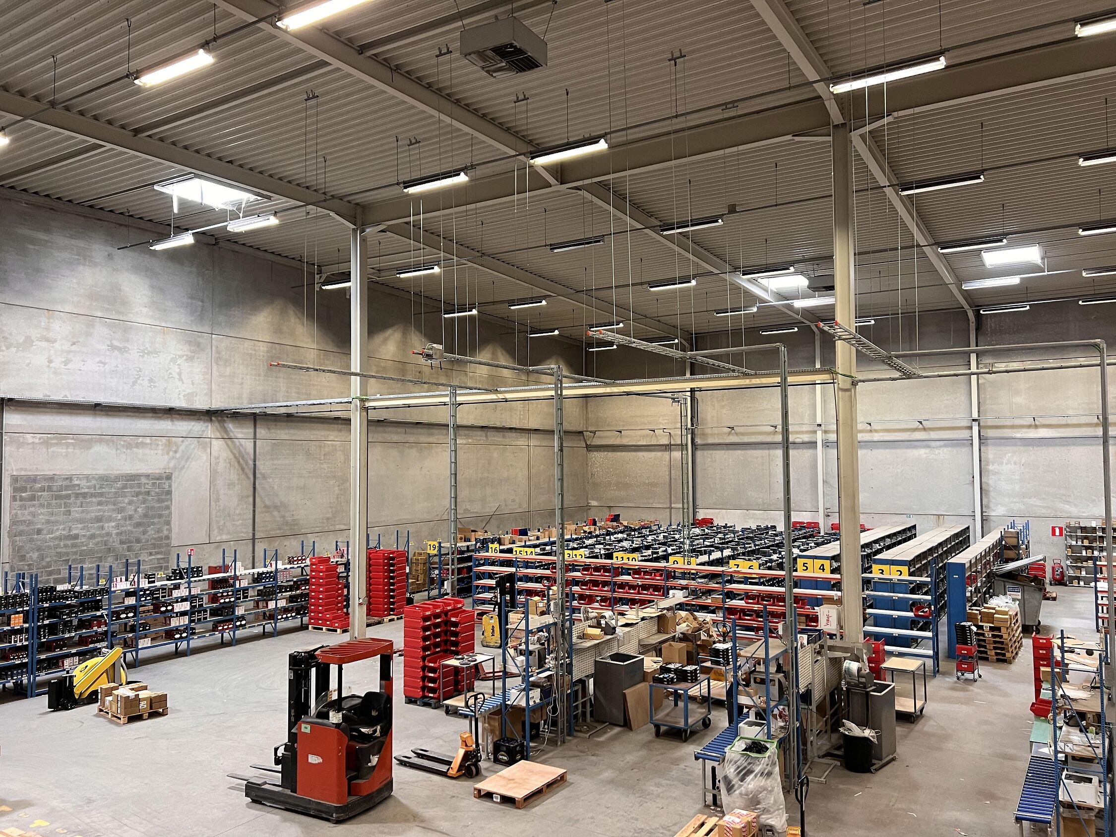 Dit magazijn van 1.386m² met kantoor en sociale ruimte is gelegen in industriezone De Prijkels, vlakbij de op- en afrit van de E17 te Deinze. Het magazijn maakt deel uit van een grotere bedrijfssite. Er is een voorliggende handelingszone met 2 sectionaalpoorten dat met het magazijn kan worden afgesloten via een snelrolpoort.
